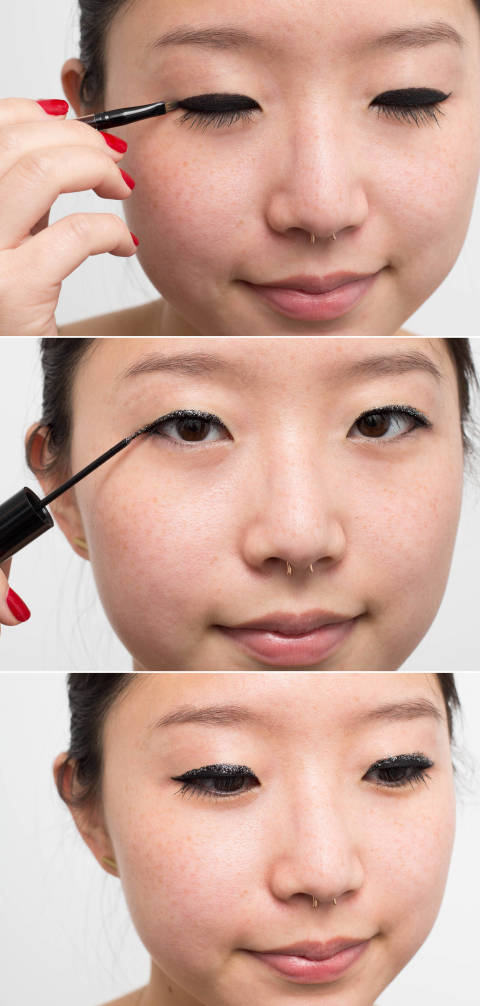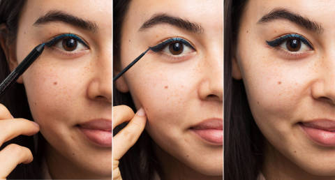 If your hand isn't steady enough for liquid eyeliner, line your eyes first with a pencil liner, and then trace over it with liquid.
