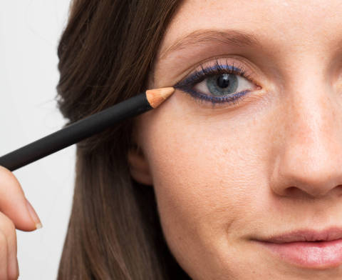 First, line your eyes with a pencil liner, and then lightly dust eye shadow in the same shade on top to hold the liner in place.