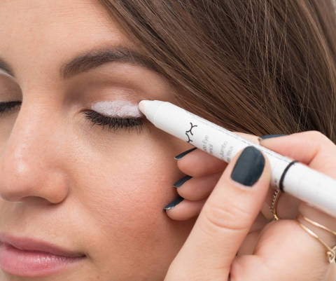Start at the inner corner of your eye and line the first three-quarters of your lash line with a light eyeliner, such as white. Then, grab a darker eyeliner and line the outside corner of your eye, then move toward the middle of your eye and stop halfway. Grab a sponge brush and begin blending the middle section where the two colors overlap.