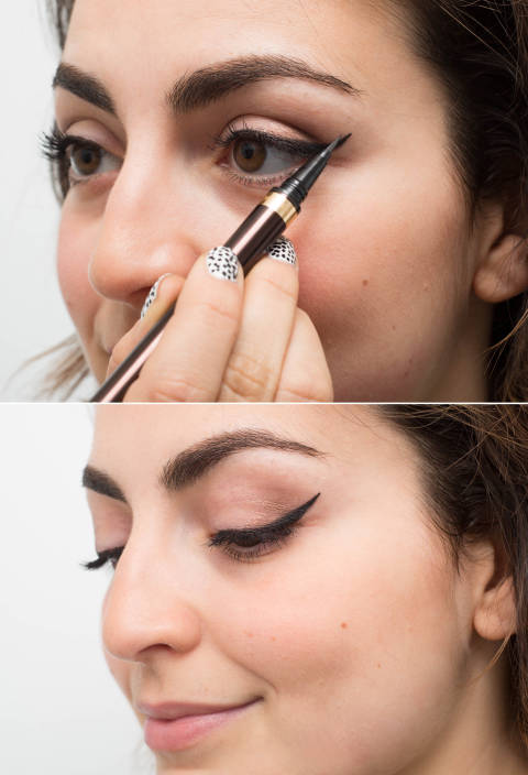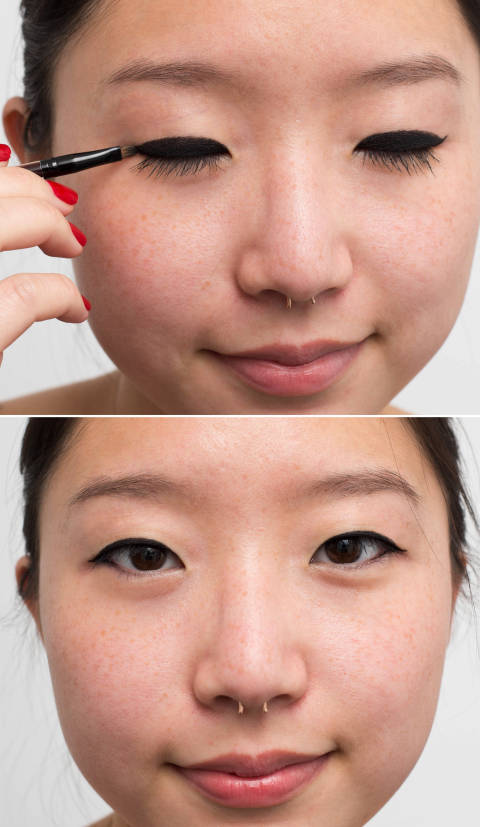 If you've smudged your liner a bit too much, draw over it with a skin-colored liner instead of wiping it off and starting over. This is also a great trick if you want to make the line super-sharp.
