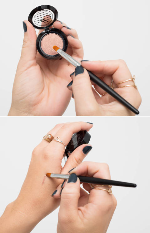 If you don't have any eyeliner, use some of the product on the brush of a mascara wand to line your eye.